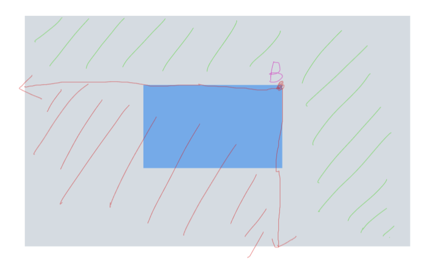 빨간색 영역은 B좌표의 x,y값 보다 전부 작은 경우에 해당됩니다.