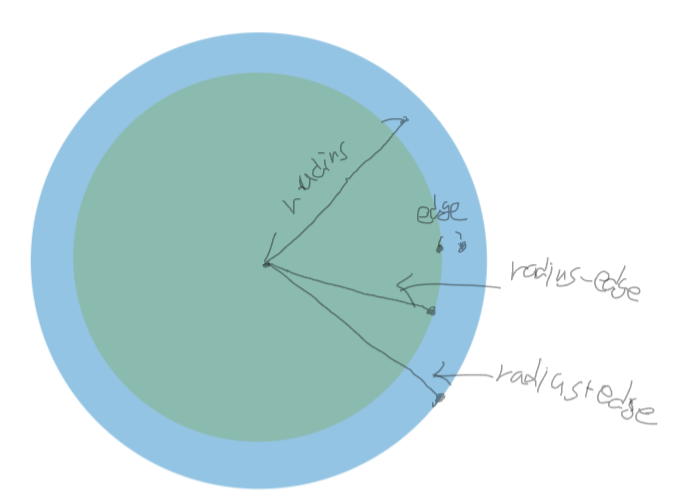 radius - edge < len < radius + edge 경우는 0 ~ 1 리턴하게 됩니다.