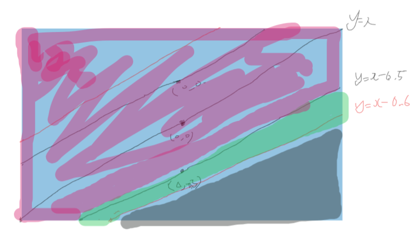 y = x - 0.5 에서 y = x - 0.6 그래프 사이를 블러링 하고 싶습니다.
