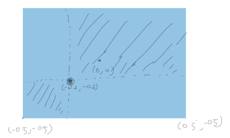 개념적으로 y = -0.2, x = -0.2라는 두 직선을 그어서 영역을 생각해 봅시다.