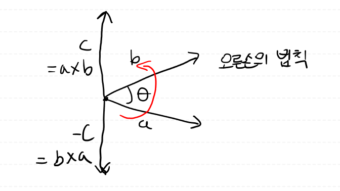 두 벡터의 외적 (Cross Product)는 다음과 같이 정의 합니다.