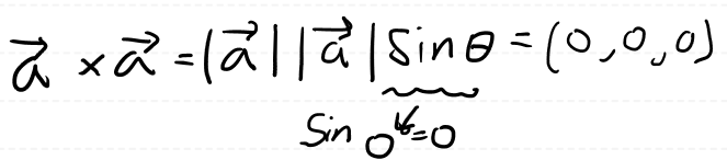 4) 같은 벡터를 외적하면 0 벡터가 됩니다.