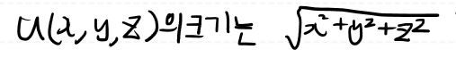 단위 벡터 U(x, y, z)의 크기를 구해 보면, 아래와 같은식으로 1 이 됩니다.