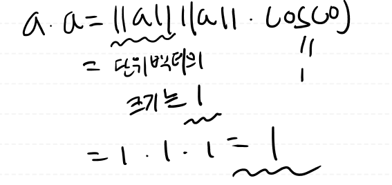 a, a 내적한 값은 1 입니다.