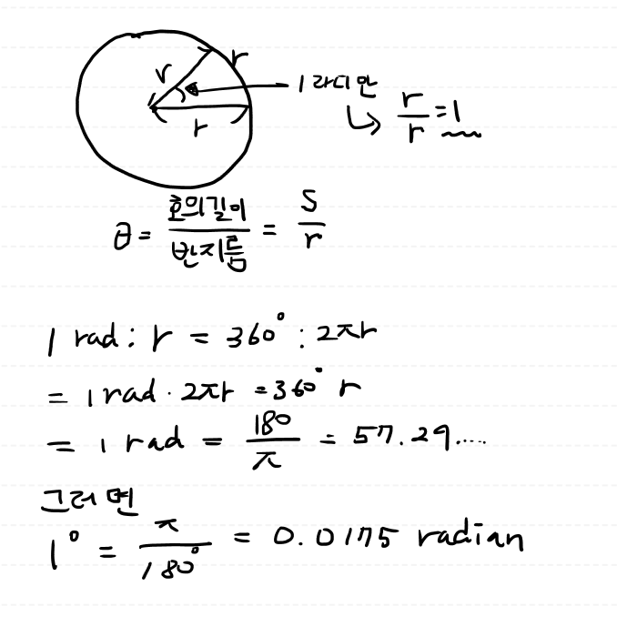 - 1 degree = (파이 / 180)