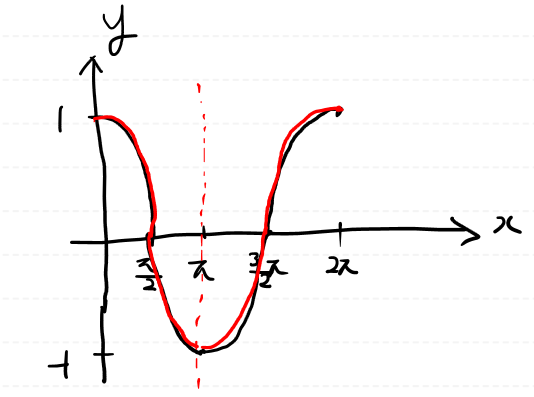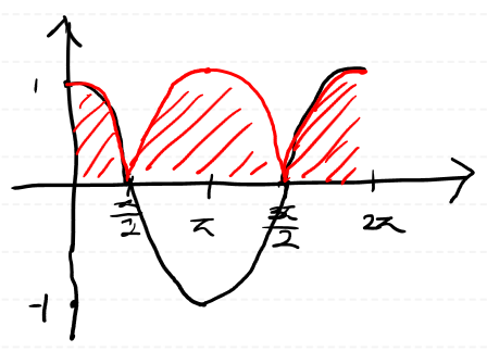 절대값을 그래프는 x = 파이 기점으로 대칭이 됩니다.