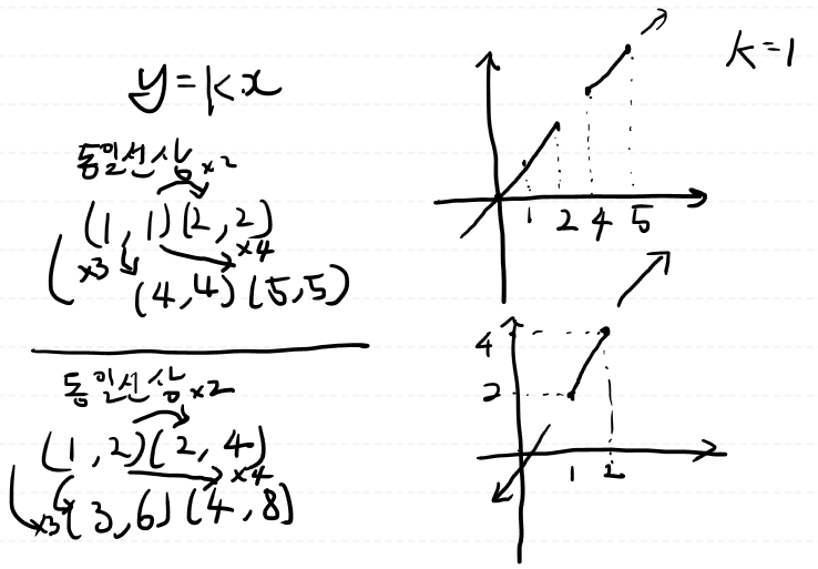 단위 벡터에 k배를 곱했을때, 만들수 있는 좌표이면 동일선상에 있다고 할수 있다.