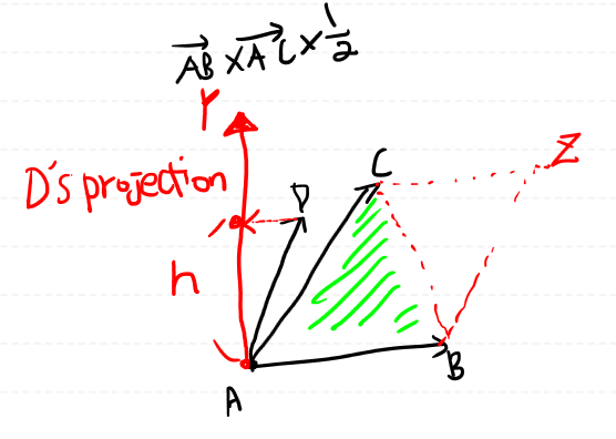 > AD 벡터를 정사형 시킨 벡터의 길이는 사면체의 높이(h) 입니다.