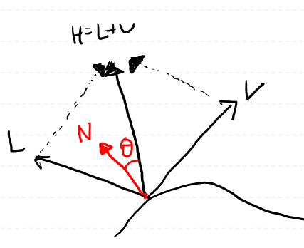 L, V 더한 H 벡터와 N벡터와 내적을 한 값을 스펙큘러 라이팅으로 사용 합니다.