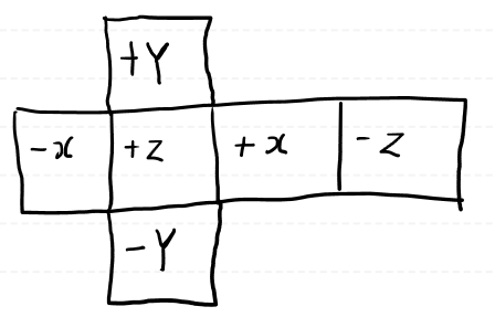 큐브맵의 구조는 정육면체에 사진 6개 붙인 형태의 타입니다.