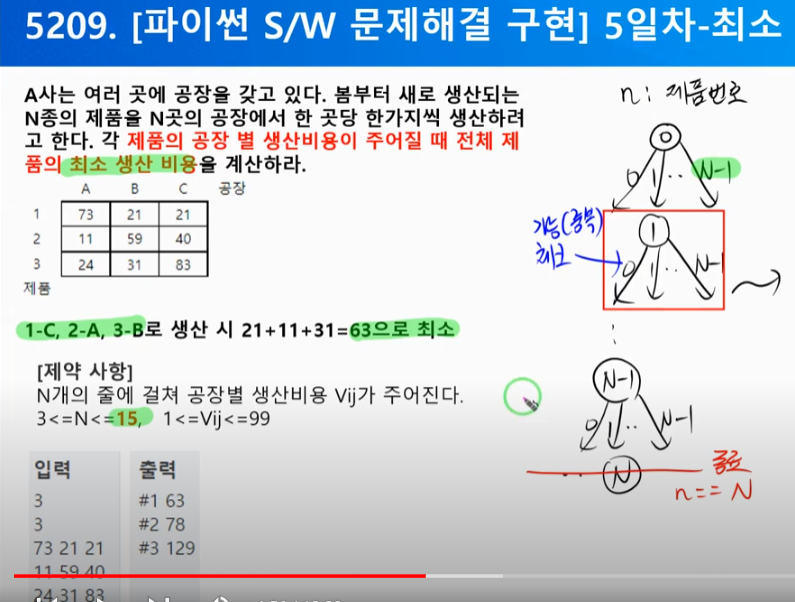 - i행 j행의 공장과 제품를 골랐을때, 최소 생산 비용을 구하여라