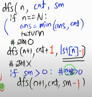 DFS(index + 1, cnt); // index + 1 번째 물건을 선택하지 않는 경우