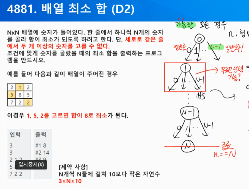 3. 배열의 최소 합 (N <= 10) (4881)