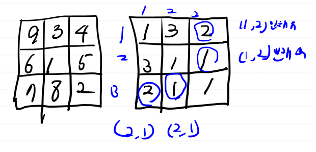 - DP 메모이제이션이 되는 좌표와, 어느 좌표 탐색으로 인하여 메모이제이션 되었는지 체크.