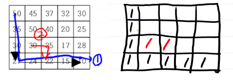 1) 1번 경로로 한번 탐색을 했음. (50 -> 35 -> 30 -> 27 -> 24 -> 22 -> 15 -> 10)