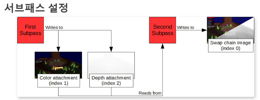 서브 패스는 프레임 버퍼와 연결 되어있으며, 연결된 첨부를 읽고 씁니다.