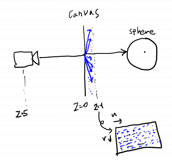 원점에서 모든 uv 좌표로 뻗어나가는 ray 벡터이다.