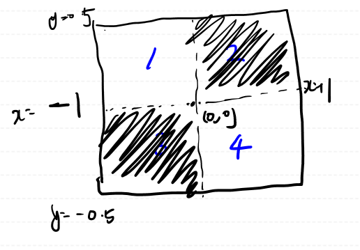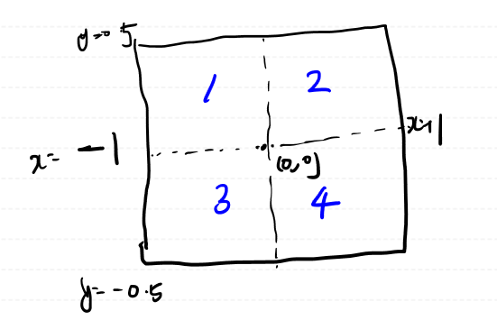 floor(p.x) 는 1번 영역은 -1, 2번 영역 0 , 3번 영역 -1, 4번 영역 0 이다.