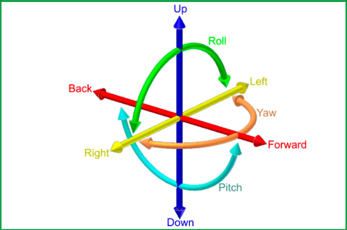 아래 그림처럼 y 회전은 Yaw, x 회전은 Pitch로 정의 된다.